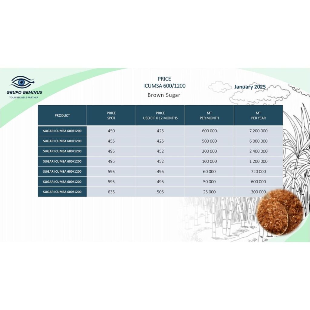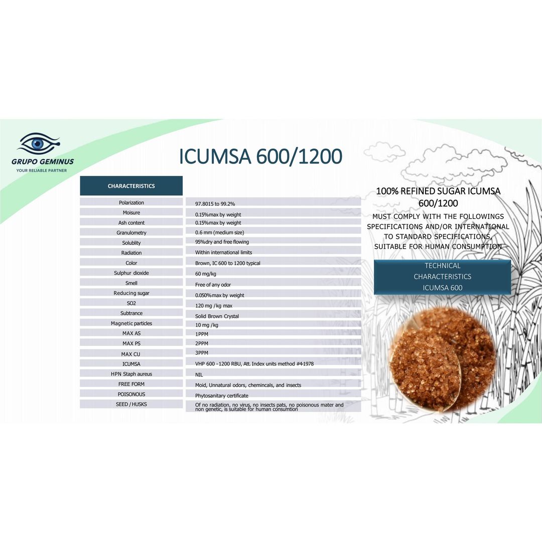 • Raw sugar VHP ICUMSA 600–1200, suitable for refinery and industrial use.