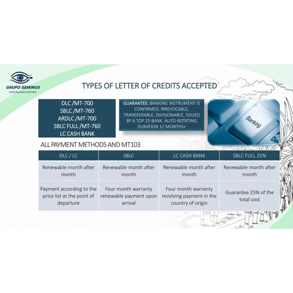 Irrevocable SBLC and DLC, confirmed by top-tier banks.