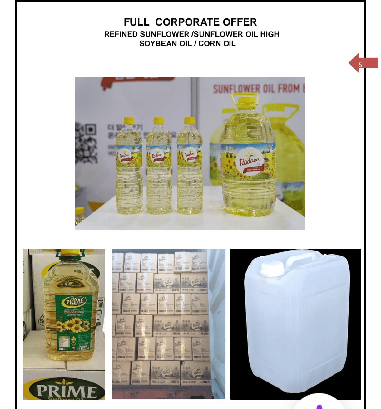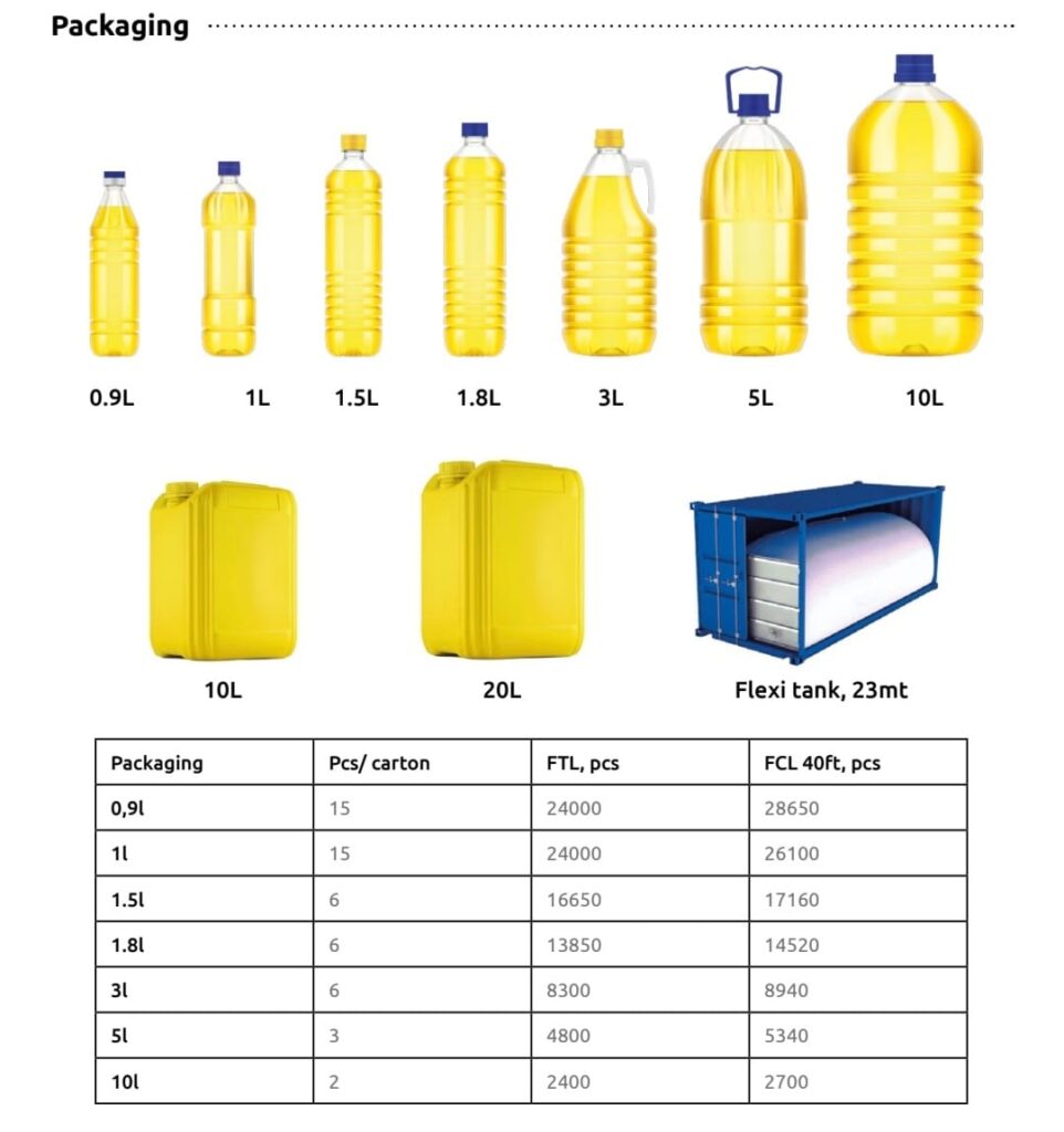 Geminus Group International supplies refined vegetable oils worldwide: sunflower oil, soybean oil, corn oil, palm oil, and rapeseed oil. We provide multiple packaging options including PET bottles (1L, 2L, 5L, 10L), jerry cans, drums, and flexitanks for bulk shipments. All products are manufactured under strict international standards with SGS inspection, GACC registration, and full export documentation including Certificate of Origin and Health Certificate. We deliver CIF to major ports with secure payments by DLC, SBLC, or MT103, ensuring transparency and reliability. With competitive pricing, strong logistics, and proven capacity, Grupo Geminus is your trusted partner for long term supply of refined vegetable oils.